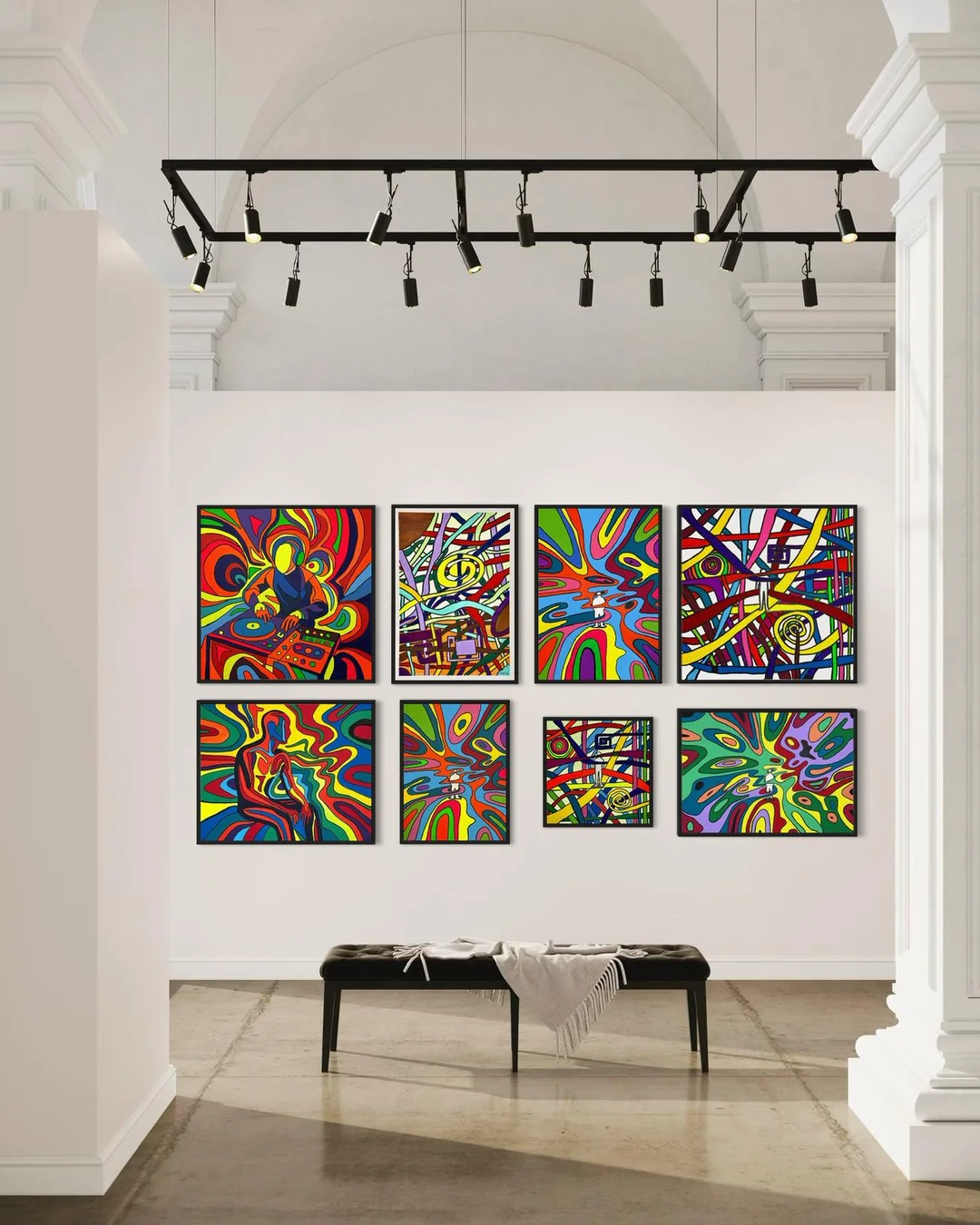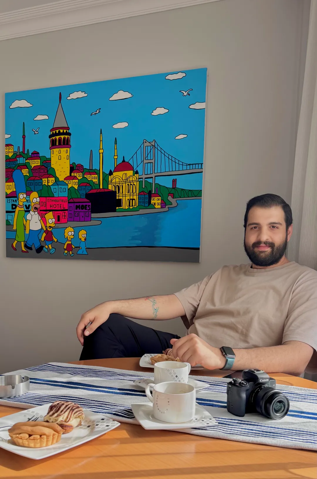 Fırat Aydın Works’un çok katmanlı ve renkli kompozisyonları, sadece bir sanat eseri değil; aynı zamanda mekânın ruhunu belirleyen unsurlardır. Bu tablolar: